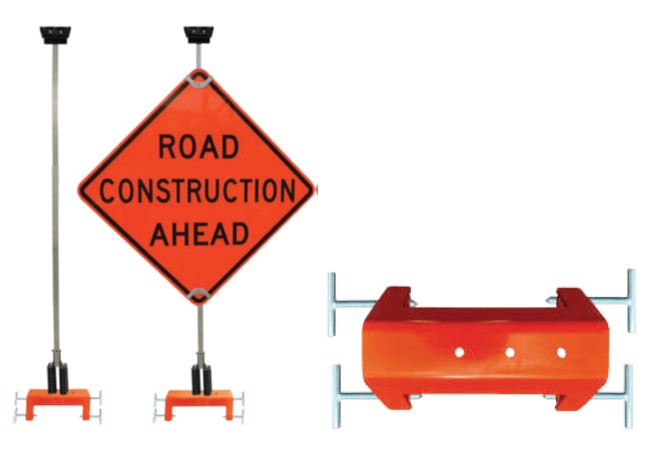 Sign stands for 36” or 48” rigid and roll-up signs on concrete highway barriers