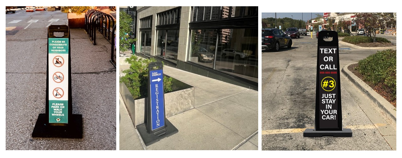 Dimensions of plastic sign stand: 14.75"W x 44.5"H