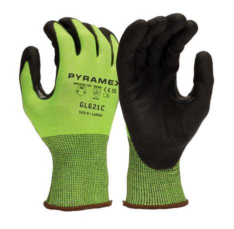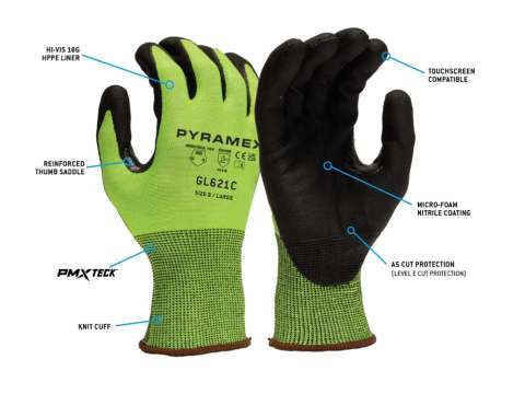 Discover the durability of GL621C gloves, boasting a level 6 abrasion and A5 cut rating for exceptional protection. Enjoy superior grip, protection, and comfort in wet or oily conditions with micro-foam nitrile dipped palms and a hi-vis 18G HPPE liner with PMXTECK. These gloves also feature touchscreen capabilities and reinforced thumb saddles for added safety.