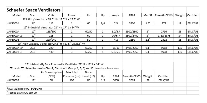 Other models available 8”, 12”, 20” ventilator.