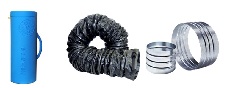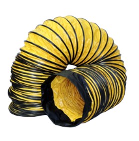 Industry standard quality ducting for everyday use. Single ply, PVC vinyl-coated polyester fabric with 15-gage spring steel wire helix and external PVC wearstrip. PVC coated polyester fastening cuffs at both ends with industry standard spring buckle cinches. Available in 8″ (15′, 25′), 12″ (15′, 25′) and 20″ (25′) sizes. Integrated carrying bags are available with 8″x 25′, 12″x 25′ and 20″x 25′ ducts.
